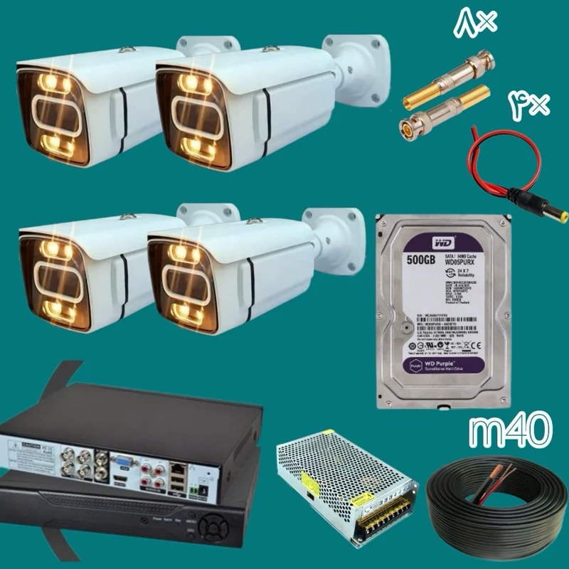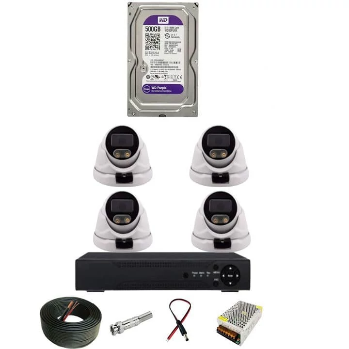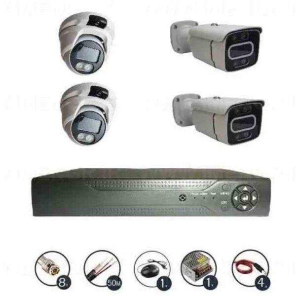 پکیج سیستم نظارتی 4 دوربین فول اچ دی دید در شب رنگی وارم لایت