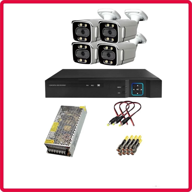 پک کامل 4 عددی دوربین مداربسته فول اچ دی دام با قابلیت تشخیص چهره و دید شب رنگی