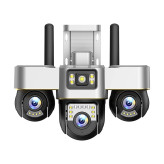یکی از برجستهترین قابلیتهای دوربین امنیتی V380 PRO-3 LENS ، استفاده از سه لنز فعال و مستقل بهصورت همزمان است که به کاربر این امکان را میدهد تا سه زاویه متفاوت از محیط را بهطور زنده، دقیق و کاملاً مستقل پایش کند—بدون نیاز به چرخش موتور یا جابهجایی لنز.