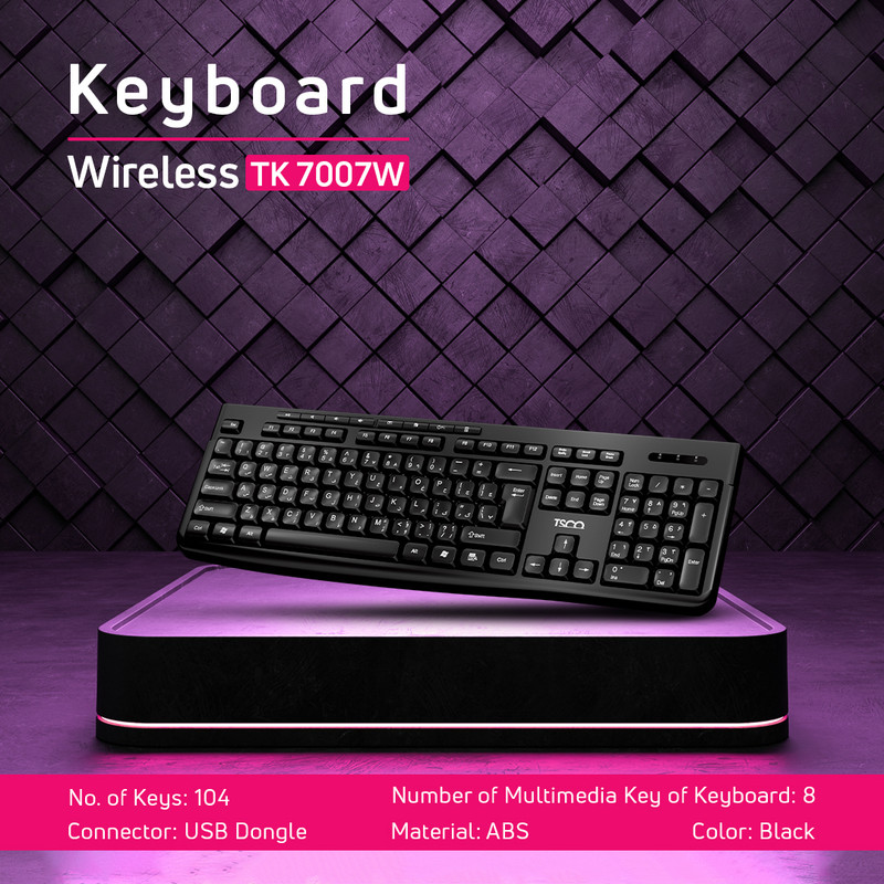 کیبورد تسکو مدل TK 7007w یک ابزار ورودی بیسیم با طراحی استاندارد است که برای پاسخگویی به نیازهای اداری، خانگی و آموزشی طراحی شده است. این مدل با بهرهگیری از اتصال 2.4GHz و کیفیت ساخت مناسب، عملکردی روان، بدون تاخیر و پایدار را فراهم میکند؛ ویژگیهایی که در یک محیط کاری، اهمیت زیادی دارند.