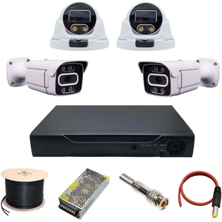 پک کامل مداربسته 4دوربین فلزی ضد اب 5مگاپیکسل فول اچ دی با 40m کابل رایگان دید در شب رنگی