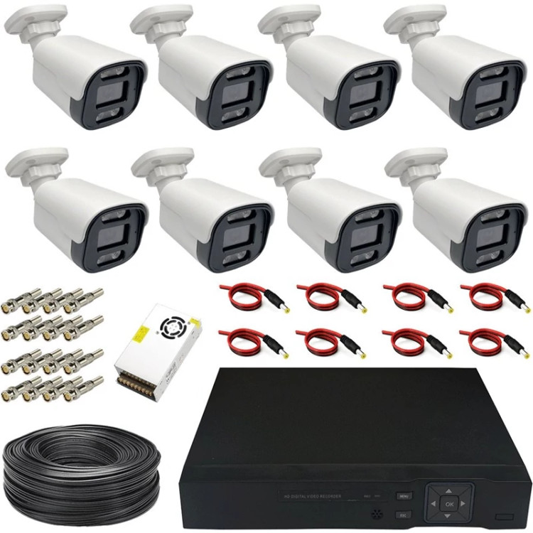 8 عدد دوربین مداربسته بولت فایبر ضد آب فول اچ دی دید در شب رنگی AHD