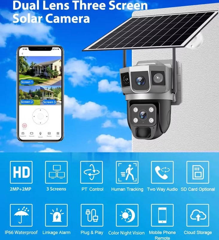 دوربین مداربسته خورشیدی مدل VTS02-G دو لنز