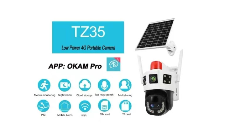 دوربین چرخشی خورشیدی سیمکارتی سه لنز 10X زوم اپتیکال مدل TZ35 بدون محدودیت در اپراتور با سرعت بالا OKAMPRO(سفید)
