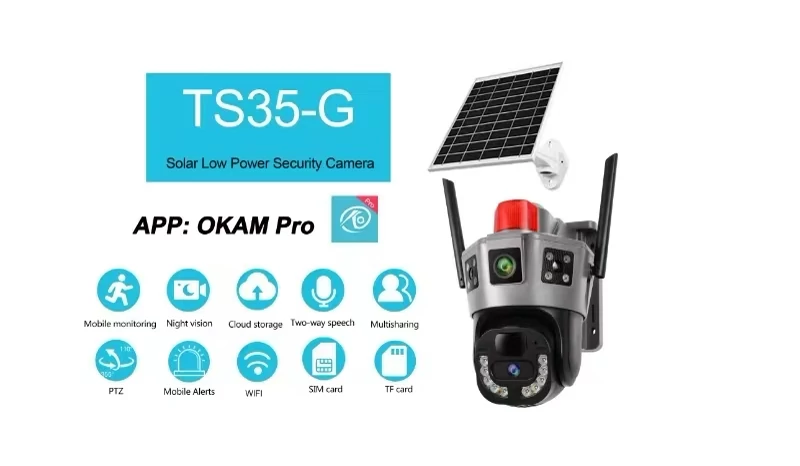 دوربین چرخشی خورشیدی سیمکارتی دو لنز سه تصویر مدل TS35 بدون محدودیت در اپراتور با سرعت بالا OKAMPRO(سفید)