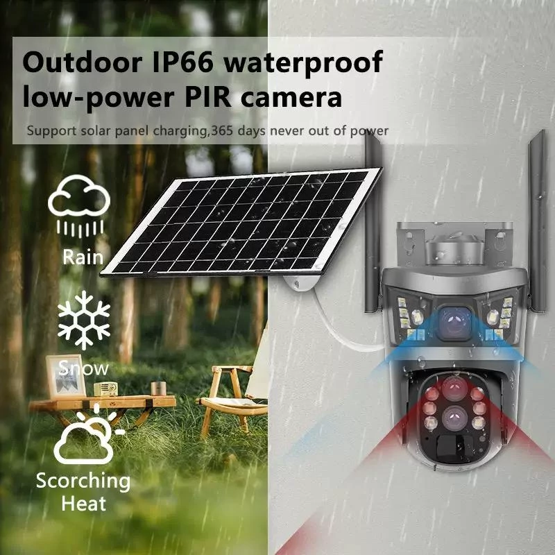 اکنون با دوربین خورشیدی گردان سه لنزه سیمکارتی ، امنیت خانه و محیط کار خود را به سطح بالاتری ببرید. این دوربین هوشمند با سنسور تشخیص حرکت انسان PIR، به شما امکان میدهد تا به طور دقیق و قابل اعتماد حرکات انسانی را در محیط نظارت کنید.