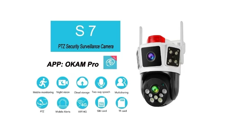 مشاهده آنلاین و چرخش 350 درجه افقی و 90 درجه عمودی دوربین سیمکارتی دو لنزه okam-pro