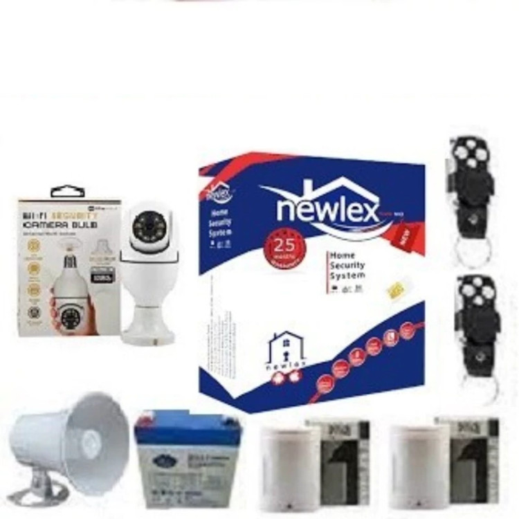 پک کامل دزدگیر سیم کارتی نیولکس دارای 2 عدد چشمی باسیم+ یک عدد هدیه دوربین لامپی