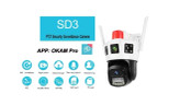مشاهده آنلاین و چرخش 350 درجه افقی و 90 درجه عمودی دوربین سیمکارتی دو لنزه okam-pro