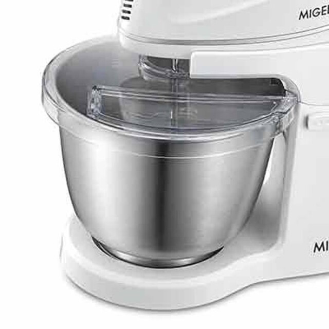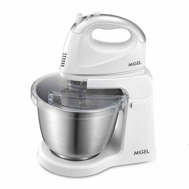 همزن«میگل» (migel) مدل «gmb251» محصولی با طراحی ساده و کاربردی است که در کنار توان مصرفی پایین، عملکردی مناسب دارد. این همزن پایهدار به کمک دو عدد پرهی همزن از جنس استیل ضدزنگ و کاسهی مخصوص با ظرفیت بالا، کاربری آسانی دارد. همچنین توان مصرفی نسبتا پایین، خمیرزن و امکان تنظیم سرعت از قابلیتهای ویژهی این محصول بهحساب میآیند. این دستگاه دارای تنظیمات سرعت و نیز دکمهی توربو است. دکمهی آزادسازی میلهها نیز روی دسته قرار گرفته است. میتوان دستگاه همزن را از پایه جدا کرد و به صورت جداگانه از آن بهره برد. میلههای همزن هم همراه این مدل عرضه میشوند که برای خمیرزدن کاربرد دارند. پایههای ضدلغزش دستگاه مانع از لرزش و جابهجایی آن حین فعالیت خواهند شد. گفتنی است که این مدل در کنار عملکرد توربو، از قابلیت شستوشوی کاسه در ماشین ظرفشویی بهره میبرد.
