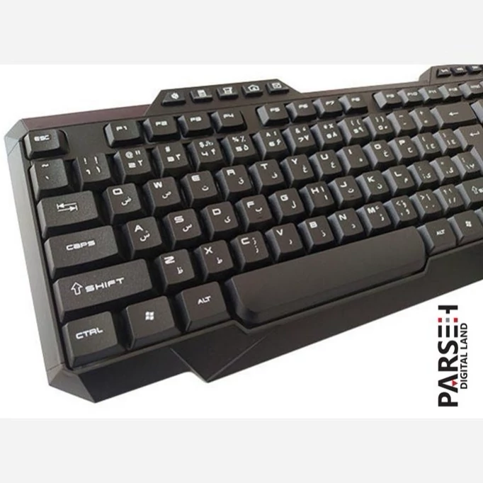 ابعاد 450x26x170mm نوع کیبورد باسیم نوع رابط USB تعداد کلید ها 114 تعداد کلید های میانبر 10 ضربه پذیری کلیدها 10000000 فرکانس 6MHz رنگ سیاه سازگار با PC Win2000/Win XP/WINME/Vista/Win7/Win8/Android/Linux/Win 10