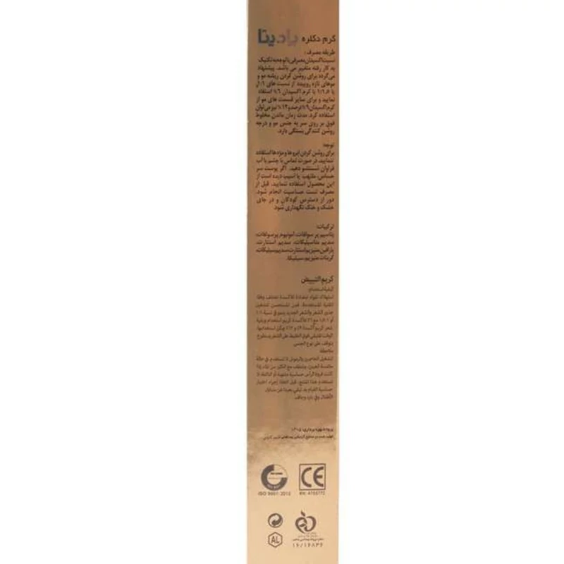 کرم دکلره پادینا با بهره گیری از ترکیبات طبیعی، بدون آسیب رساندن به ساختار مو، رنگدانه های تیره مو را از بین برده و آن را برای جذب رنگ های روشن آماده می کند.