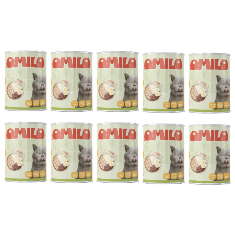 کنسرو غذای گربه بالغ اومیلو مدل پک چانک طعم مرغ بسته 10 عددی