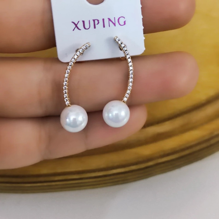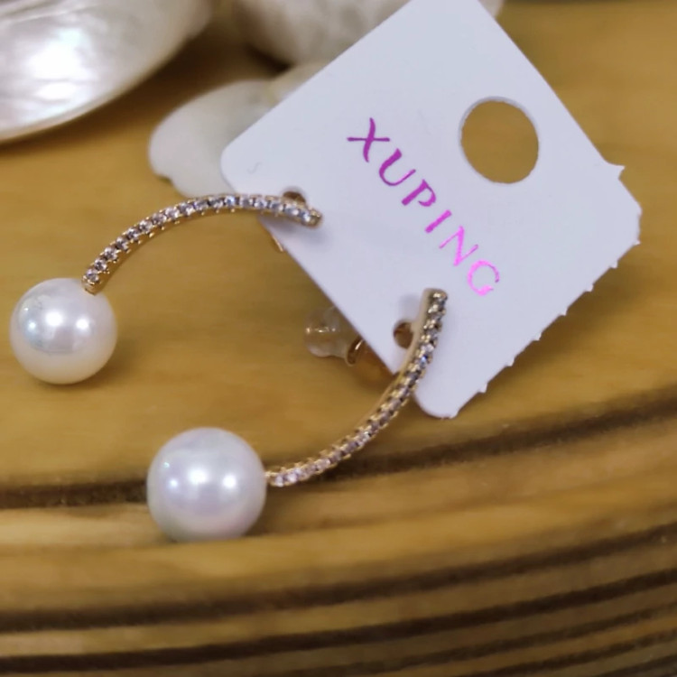 گوشواره ژوپینگ مرواریدی نگین دار استیل رنگ ثابت