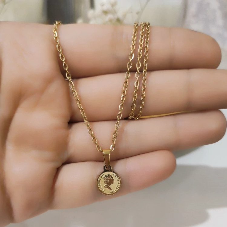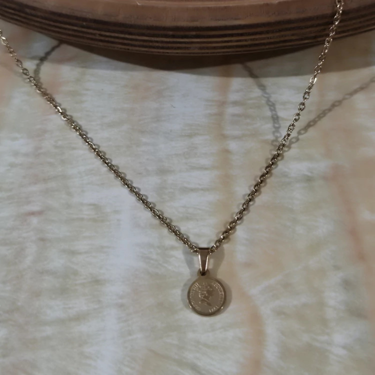 پلاک زنجیر رخ ویکتوریا سایز کوچک استاینلس استیل رنگ ثابت بدلیجات مشابه طلا اکسسوری و زیورآلات دخترانه وزنانه کادو وهدیه