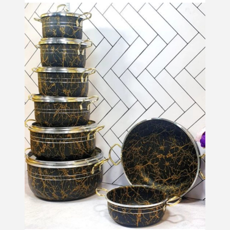 سرویس قابلمه 14 پارچه ماربل مشکی داخل گرانیت