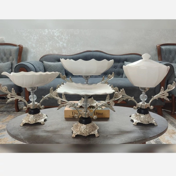 سرویس 4 تیکه پذیرایی چینی دسته دار طرح سیلور