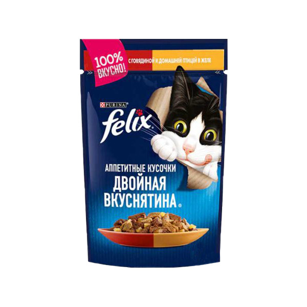 پوچ گربه بالغ فلیکس مدل Chicken & Beef In Jelly طعم مرغ و گوشت وزن ۷۵ گرم