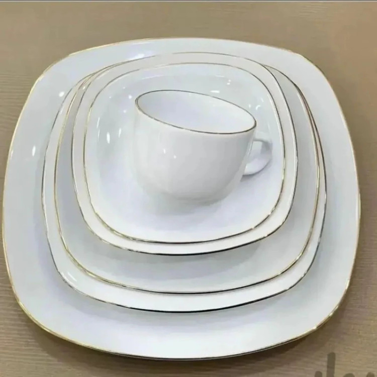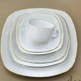 سرویس چینی 12 نفره 77 پارچه زرین سفید ساده لب طلایی