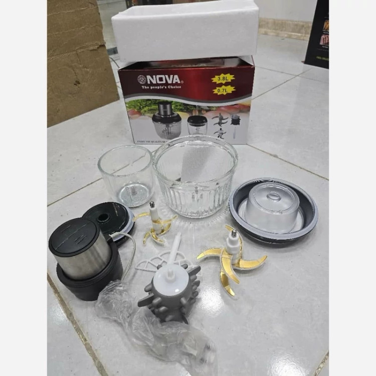خردکن غذاساز دوقلو نوا 3.8 لیتری دارای 2 عدد 6 تیغ پرسی خمیز زن وسیر پاک کن