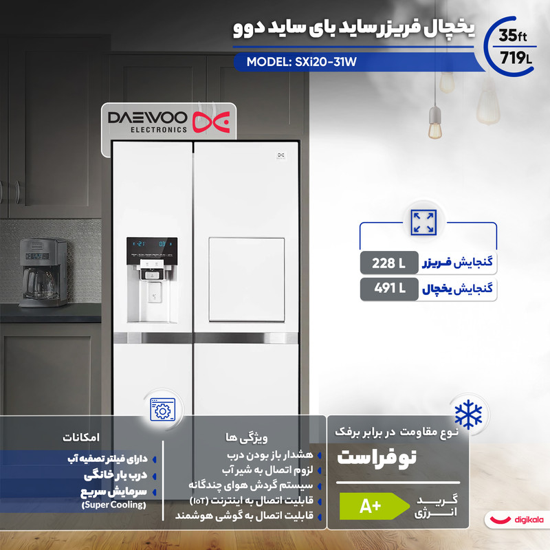 هشدار باز بودن درب , لزوم اتصال به شیر آب , سیستم گردش هوای چندگانه , قابلیت اتصال به اینترنت (IoT) , قابلیت اتصال به گوشی هوشمند