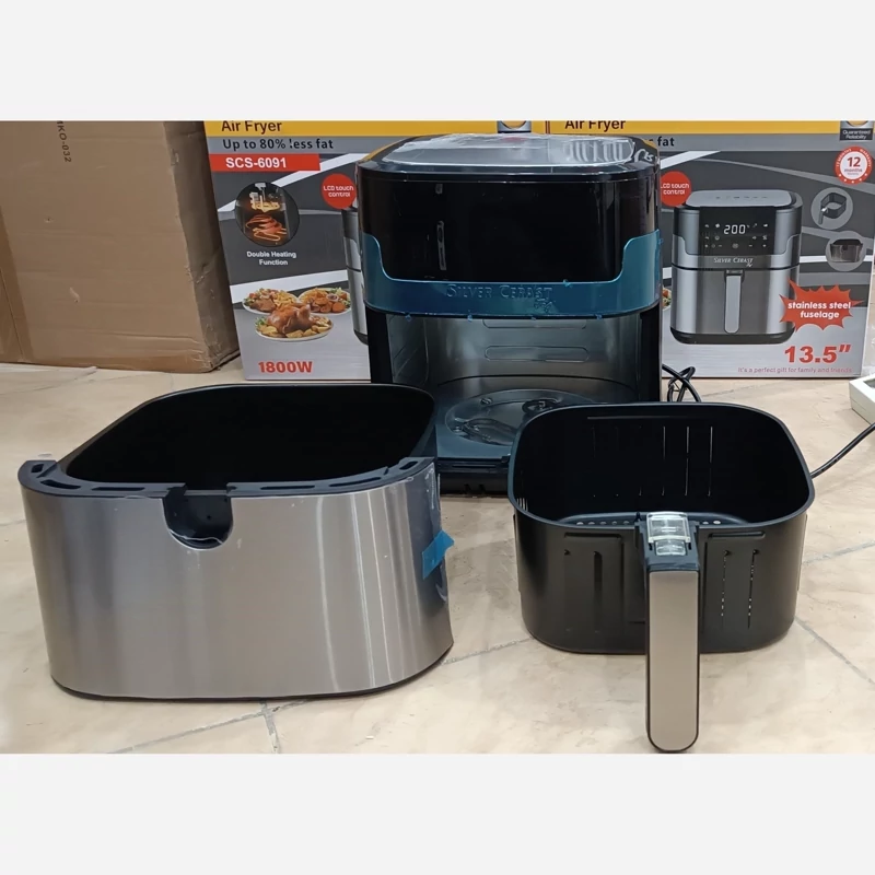 تحت لیسانس آلمان توان 2200 وات ظرفیت 13.5 لیتری قابلیت 6 برنامه پخت صحفه نمایشگر دیجیتال لمسی تنظیم دما از 80 الی 200 درجه سانتیگراد تنظیم زمان تا 60 دقیقه مشخصات سرخ کن سیلور کرست مدل SCS-6091 این سرخ کن سیلور کرست مدل SCS-6091 با توان واقعی 2200 وات قدرت دارد. جنس بدنه از استیل ضد زنگ میباشد.