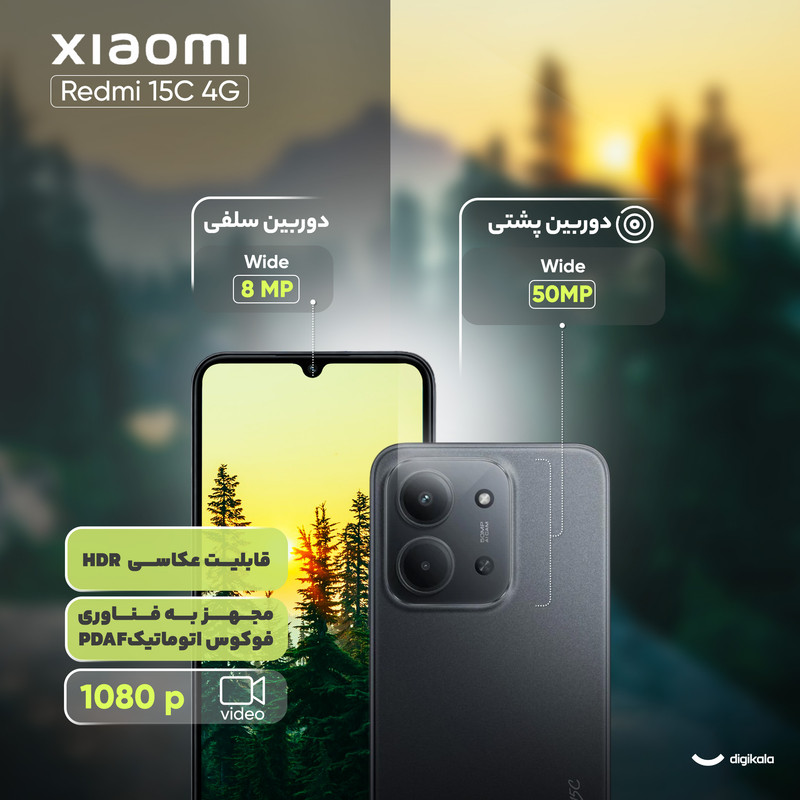 گوشی Redmi 15C 4G یکی از تازهترین میانردههای اقتصادی شیائومی است که با تمرکز بر دوام باتری، صفحهنمایش بزرگ و طراحی مدرن روانه بازار شده است. این دستگاه با بدنهای مقاوم و گواهیIP64 در برابر گرد و غبار و پاشش آب، ترکیبی از استحکام و زیبایی را ارائه میدهد. نمایشگر ۶.۹ اینچی IPS LCD با نرخ نوسازی ۱۲۰ هرتز، تجربهای روان و جذاب را در تماشای فیلم و اجرای بازیها فراهم میسازد. قلب تپندهی این گوشی، تراشهی Mediatek Helio G81 Ultra است که با معماری ۱۲ نانومتری و هشت هستهی پردازشی، عملکردی قابل قبول برای استفادههای روزمره، فعالیت در شبکههای اجتماعی و بازیهای سبک ارائه میدهد. همچنین با پشتیبانی از کارت حافظه جانبی، نگرانی شما در رابطه با حافظه را رفع میکند. در بخش تصویربرداری، دوربین اصلی ۵۰ مگاپیکسلی به همراه لنز کمکی QVGA، تصاویری شفاف و دقیق ثبت میکند و دوربین سلفی ۸ مگاپیکسلی نیز برای تماسهای تصویری و عکسهای روزمره کیفیت مناسبی دارد. باتری ۶۰۰۰ میلیآمپرساعتی با شارژ سریع ۳۳ واتی یکی از نقاط قوت اصلی این دستگاه محسوب میشود. در مجموع، Redmi 15C 4G گزینهای ایدهآل برای افرادی است که به دنبال گوشیای بادوام، اقتصادی و کارآمد در عین بهرهمندی از طراحی مدرن و نمایشگر بزرگ هستند.