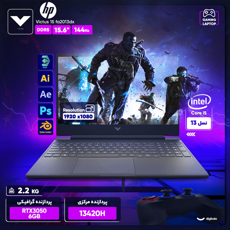 لپ تاپ 15.6 اینچی اچ‌پی مدل Victus 15 fa2013dx-i5 13420H-RTX3050 6GB-8GB DDR4 3200MHz-512GB SSD-W