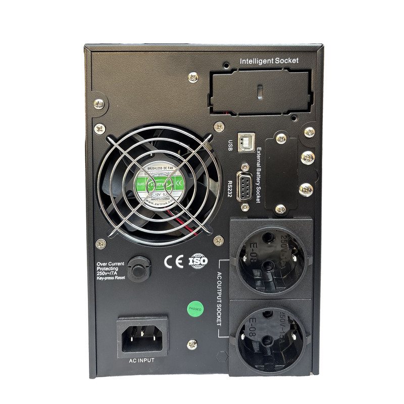 خروجی سینوسی خالص (Pure Sine Wave) این UPS کاملاً با پاورهای Active PFC و تجهیزات حرفهای سازگار است. طراحی فرکانس بالا موجب کاهش وزن و ابعاد دستگاه شده و در عین حال راندمان بالا و تلفات انرژی پایین را فراهم میکند.