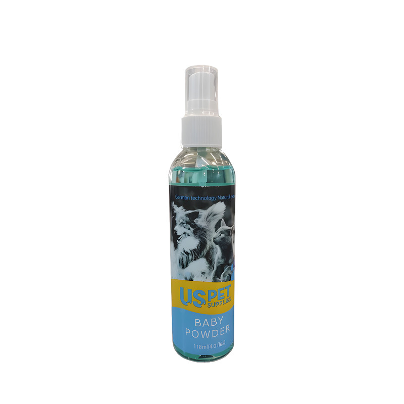 اسپری خوشبوکننده سگ و گربه یو اس پت مدل پودر بچه حجم 118 میلی‌لیتر