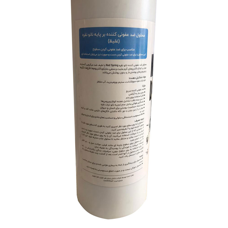 محلول ضدعفونی کننده نانو نقره با طیف ضد میکروبی بسیار وسیع و موثر بر انواع باکتری های گرم مثبت و منفی -قارچ ها - انگلها- و ویروس ها می باشد. این محصول غلیظ بوده و احتیاج به رقیق سازی ندارد.مناسب برای ضدعفونی سطوح و حتی دست میتوان استفاده نمود.همین طور از این محصول جهت ضدعفونی کردن بدن سگ و گربه نیز میتوان استفاده نمایید.