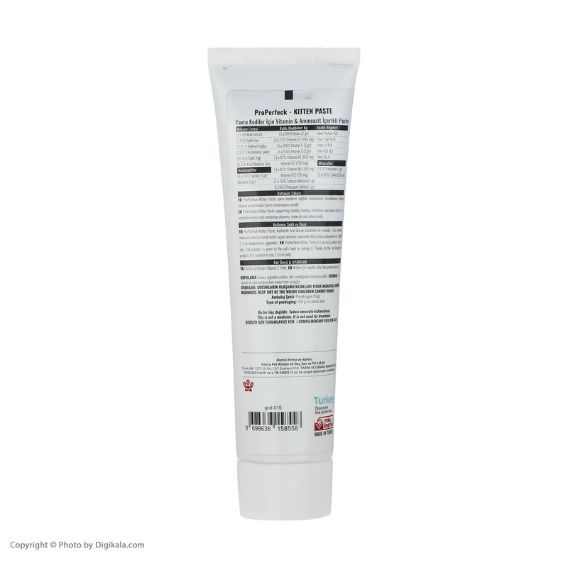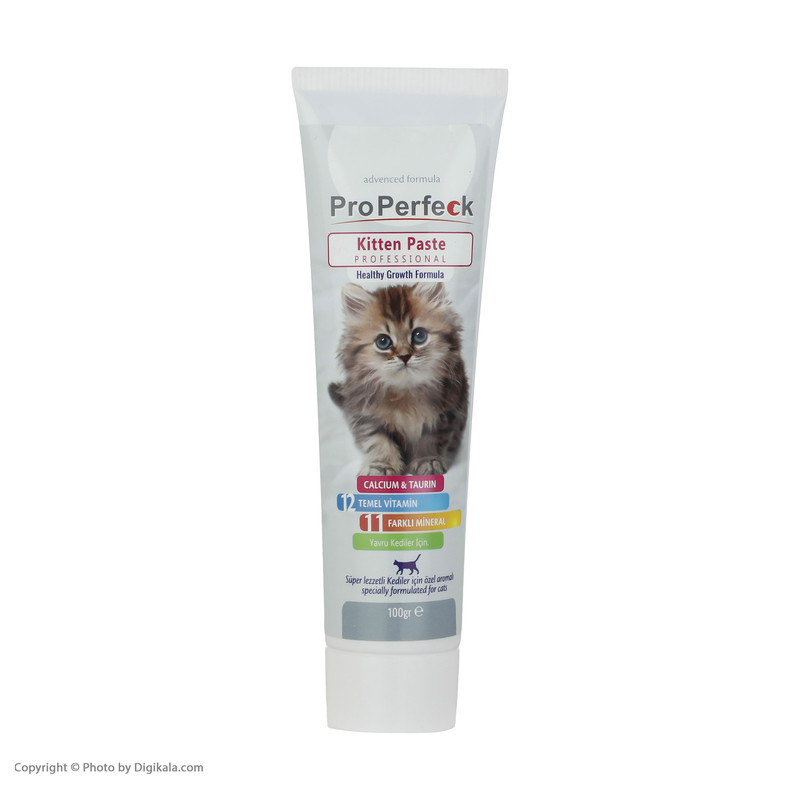 خمیر مکمل پروپرفک ویژه بچه گربه های بالای 6 هفته است. این محصول رشد و استحکام استخوان ها را تقویت کرده و سبب بهبود بینایی حیوان می شود. این محصول دارای فرمولاسیونی است که رشد متعادل را ایجاد می کند و نسبت بهینه کلسیم به فسفر را برای تقویت و رشد استخوان ها تنظیم میکند. این محصول با ویتامین B12، عناصر کمیاب و مواد معدنی غنی شده است که سبب حمایت از عملکرد سیستم ایمنی خواهند شد. خمیر پروپرفک حاوی تورین است که عملکرد قلب را تقویت می کند و برای سلامتی بسیار مفید است. همچنین تورین بینایی بچه گربه ها را بهبود بخشیده و ماده ای بسیار مفید و ضروری است.