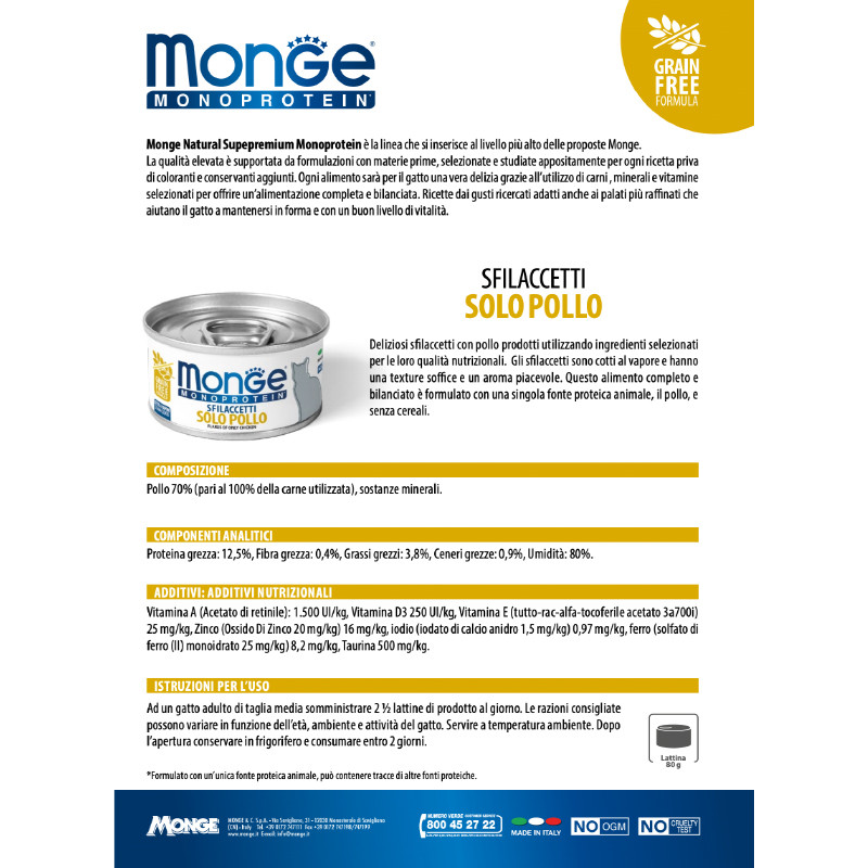 کنسرو غذای گربه بالغ مونژ مدل Monge Monoprotein با طعم مرغ وزن 80 گرم