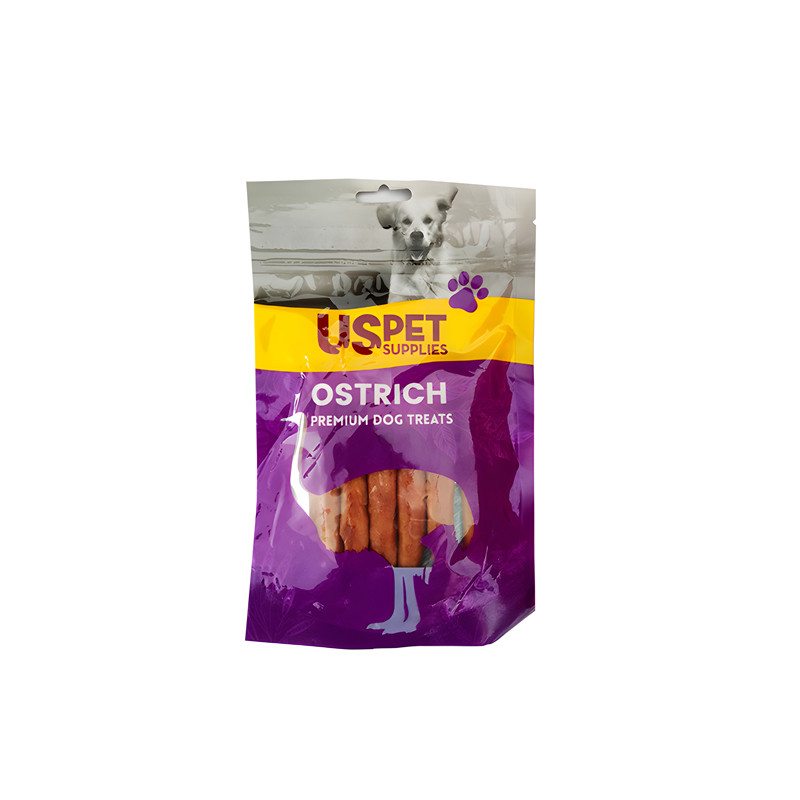1 عدد تشویقی سگ با طعم شترمرغ مدل سوسیسی وزن ۱۰۰ گرم