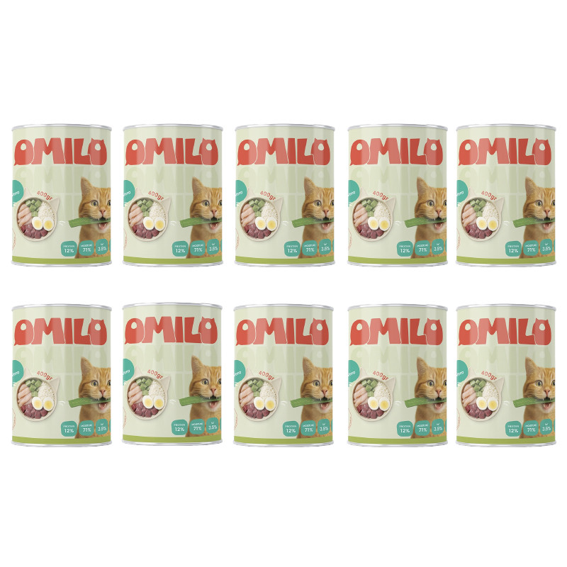 کنسرو غذای گربه بالغ اومیلو مدل پک نچرال طعم مرغ و آلوئه‌ورا بسته 10 عددی