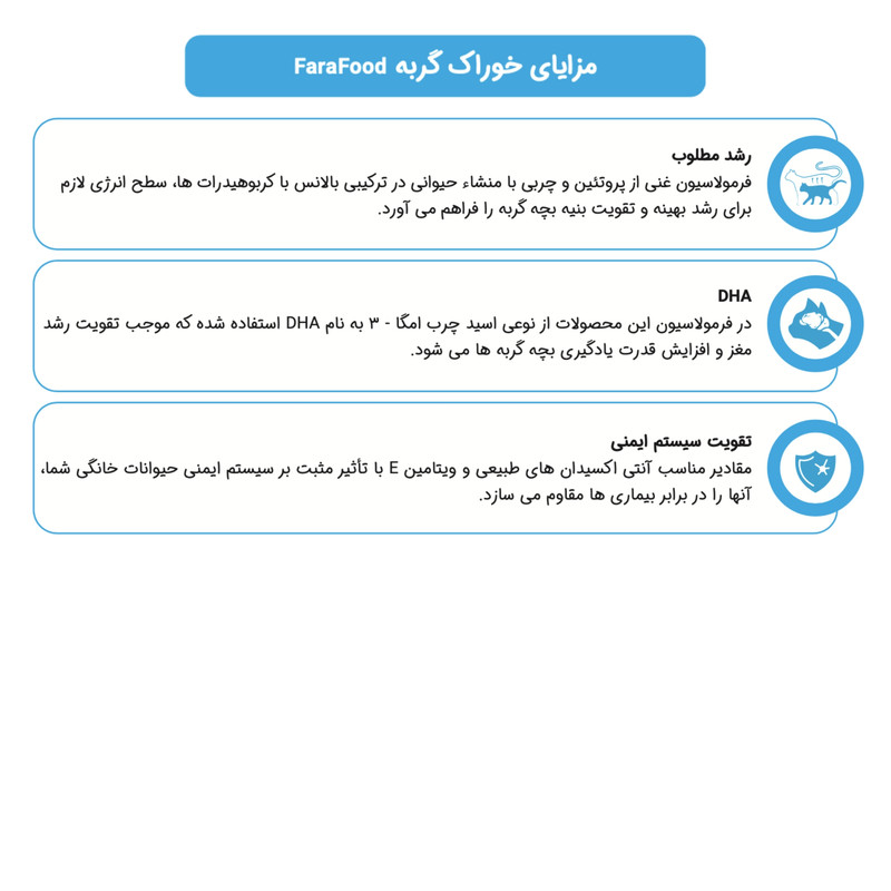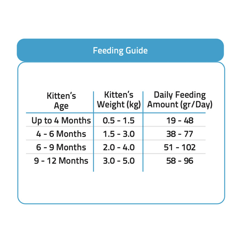 غذای خشک گربه کیتن (بچه گربه) فرافود مناسب برای تمام نژادها تا سن 12 ماهگی با تکهها ریز 7.5 میلیمتری شامل ترکیبات مقوی و لازم زیر است: