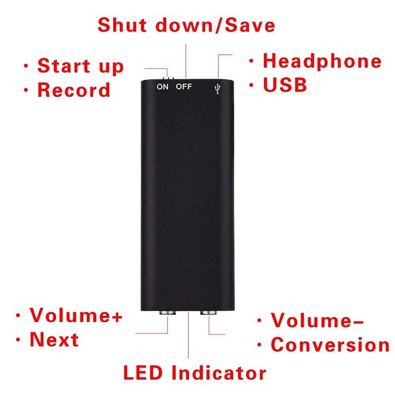 دستگاه ضبط صدای دیجیتالی دارای ۸ گیگابایت حافظه داخلی است که این محصول دارای حافظه 16 گیگ است و با این حافظه دیگر نباید نگران حجم اطلاعات ذخیره شده در حافظه بود. این دستگاه یک محصول جالب و کاربردی برای دانشجویان و خبرنگاران و همه افرادی که میخواهند ضبط صدای مخفیانه انجام دهند، است. مینی ضبط صوت مینیاتوری ابعاد بسیار کوچکی دارد و میتواند همیشه و همه جا همراه کاربرانش باشد ، دستگاه ضبط صدای مینیاتوری یا دستگاه ضبط صدای یکی از جدید ترین محصولات در رده مینی ضبط صوت های مخفی می باشد.