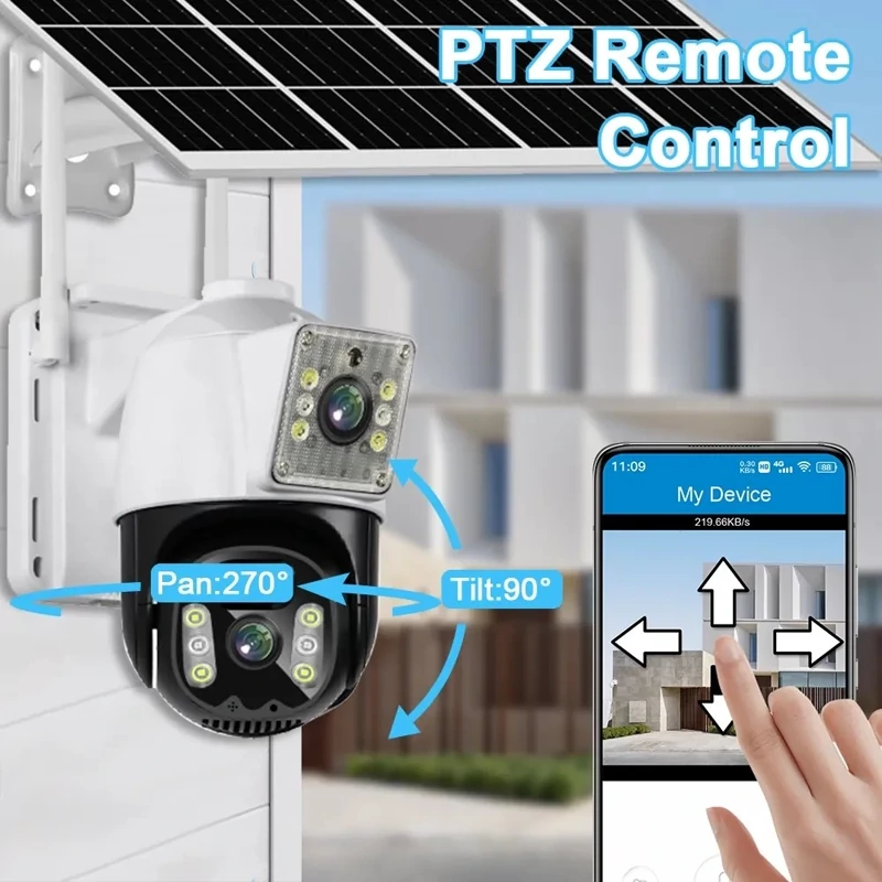 با دوربین خورشیدی گردان دو لنزه سیمکارتی VCS09-G، تجربه امنیتی بینظیر را تجربه کنید.این دوربین همه چیزی را که برای نظارت و امنیت شما نیاز دارید، در خود دارد. با لنزهای دوگانه، تمام جزئیات را با دقت ذخیره کنید. با وضوح Full HD، تصاویری روشن و واضح با جزئیات دقیق را دریافت کنید.